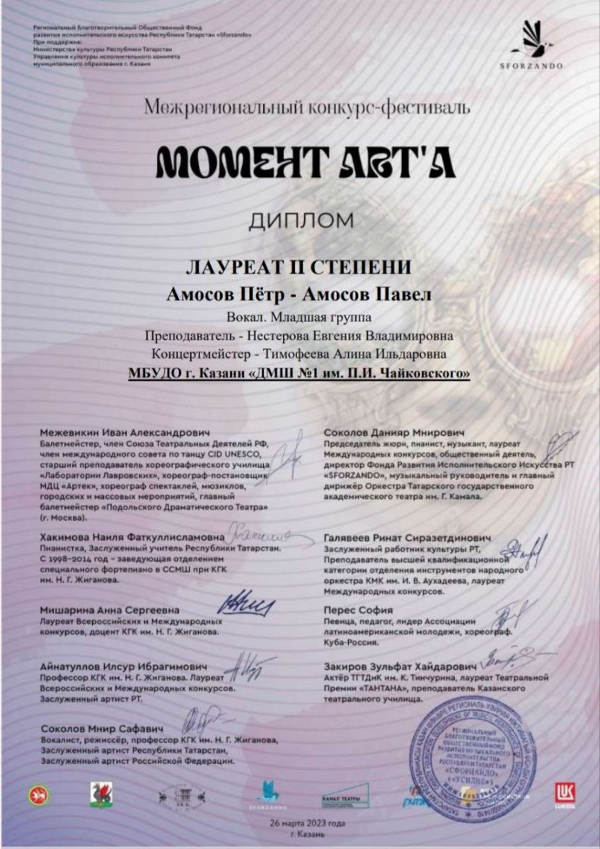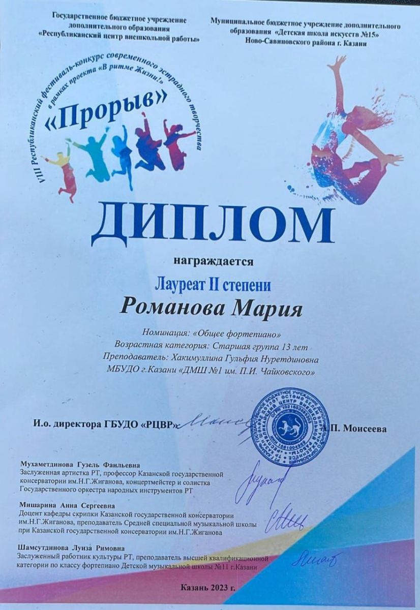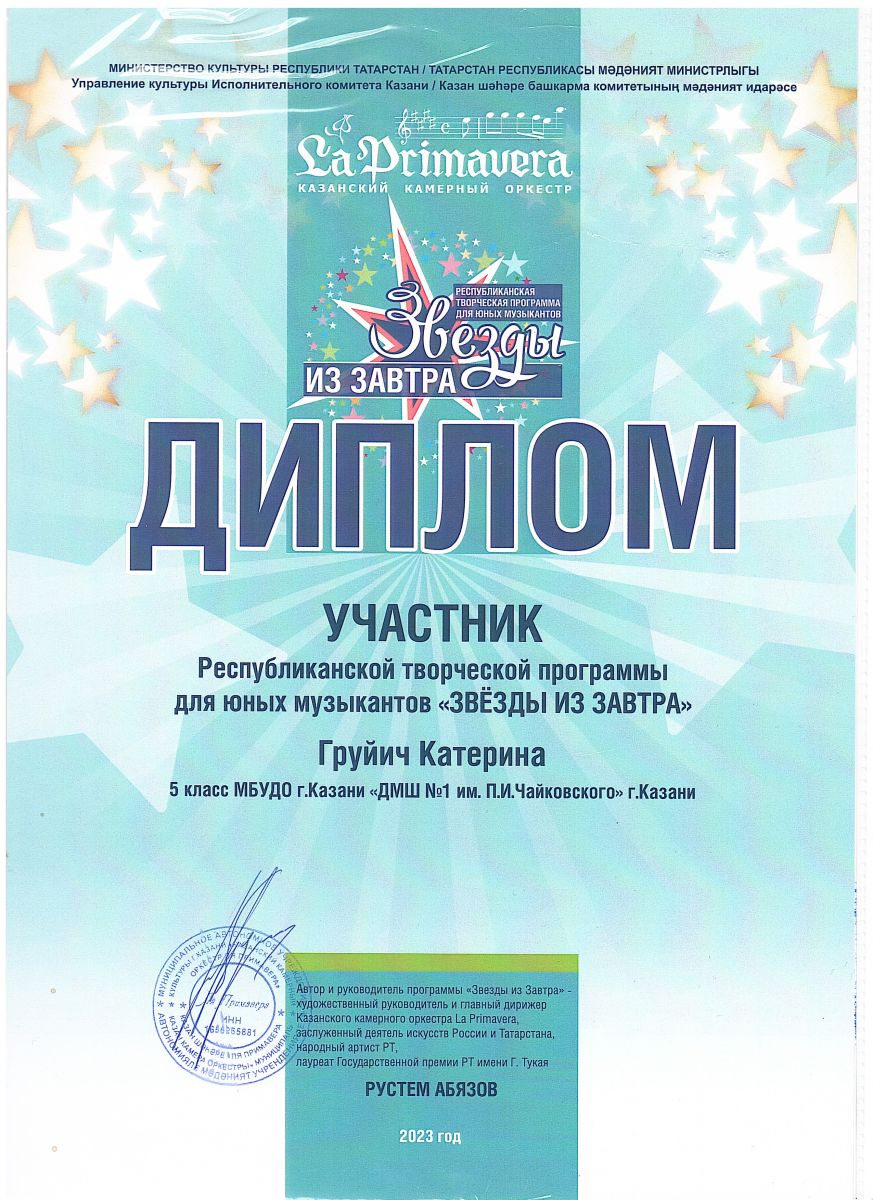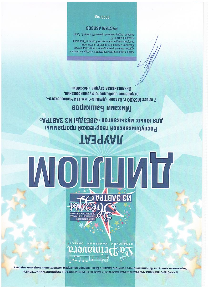 Республиканская творческая программа для юных музыкантов "Звёзды из завтра" - Приходцев Д., класс Быстровой О.А.;