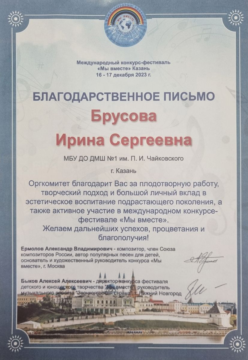 Международный конкурс-фестиваль "Мы вместе" - Благодарность Брусовой И.С.;