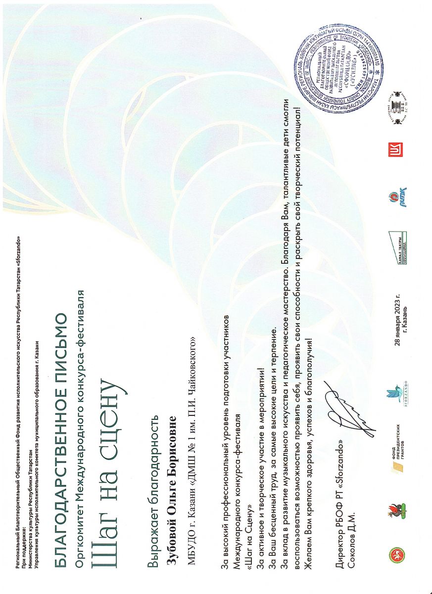 Международный конкурс-фестиваль "Шаг на сцену" - Благодарность Зубовой О.Б.;