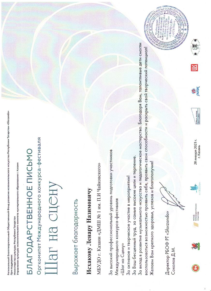 Международный конкурс-фестиваль "Шаг на сцену" - Благодарность Исхакову Л.Н.;