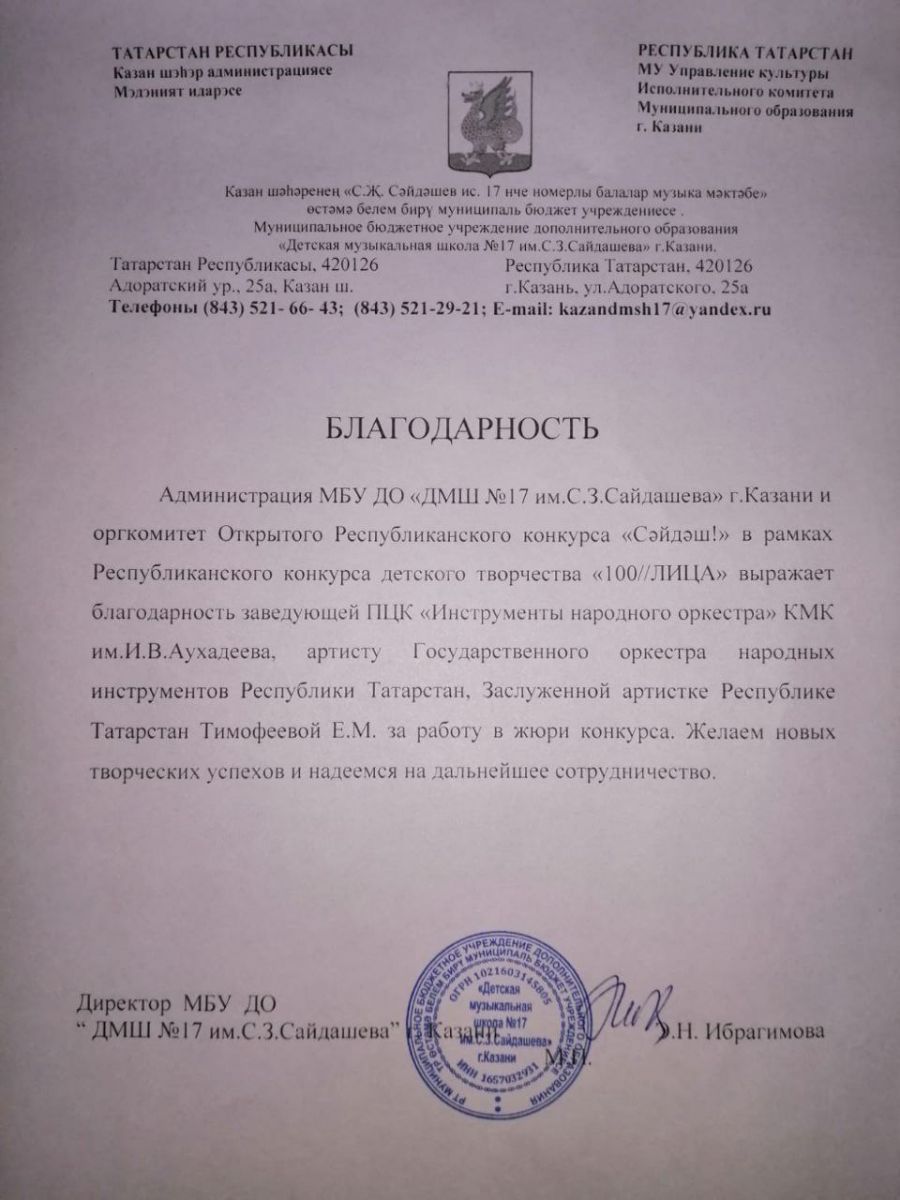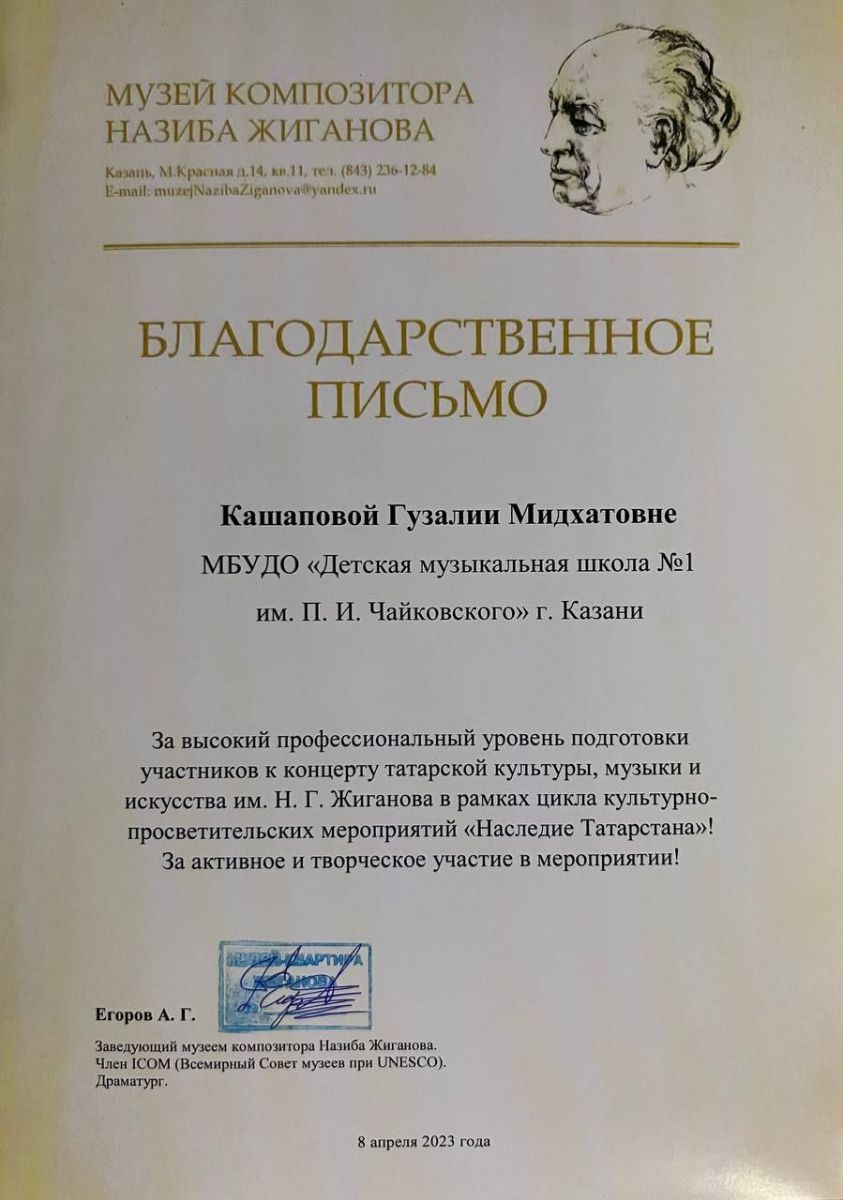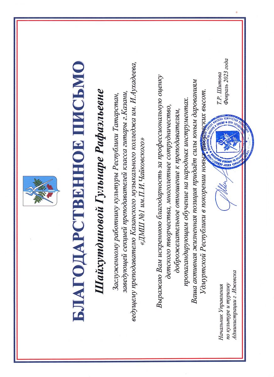 Управление по культуре и туризму Администрации г.Ижевска - Благодарность Шайхутдиновой Г.Р.;