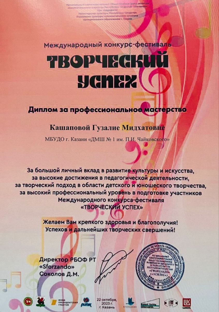 Международный конкурс-фестиваль "Творческий успех" - Благодарность Кашаповой Г.М.;