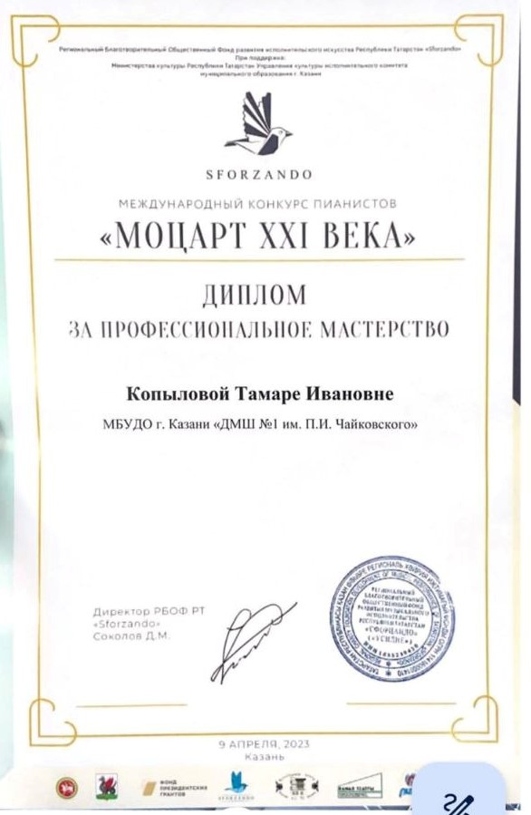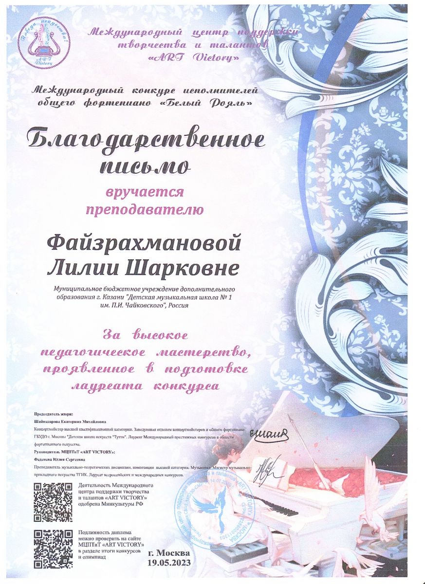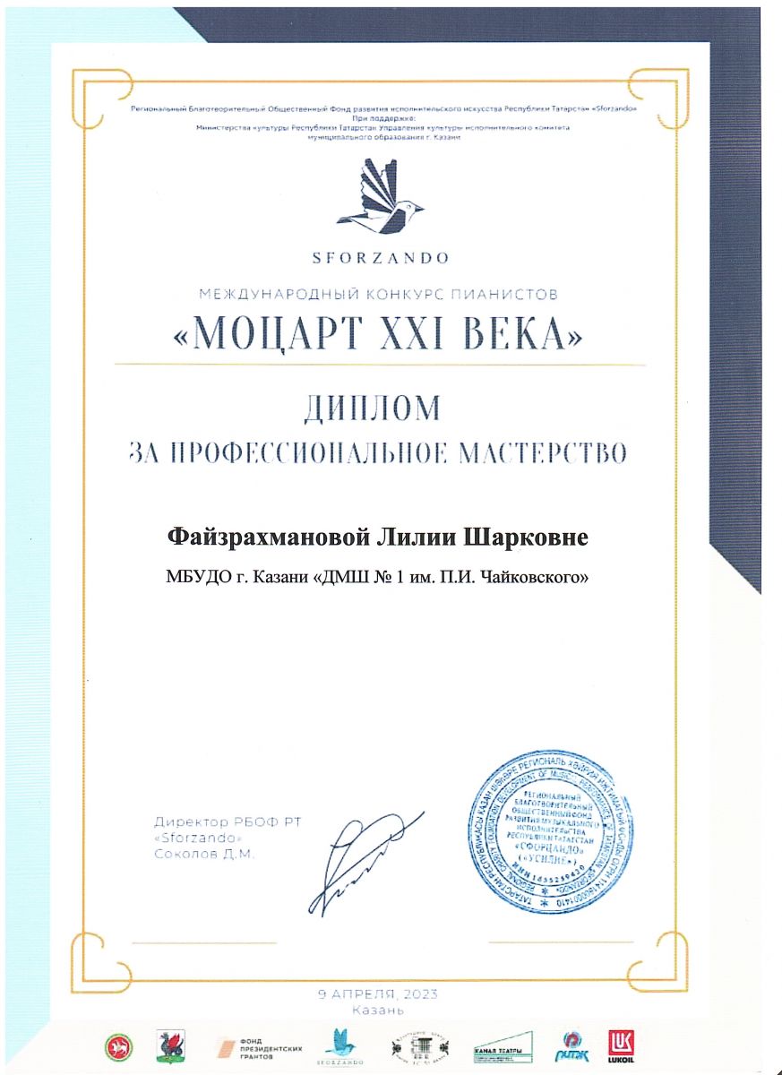 Международный конкурс пианистов "Моцарт XXI века" - Благодарность Файзрахмановой Л.Ш.;