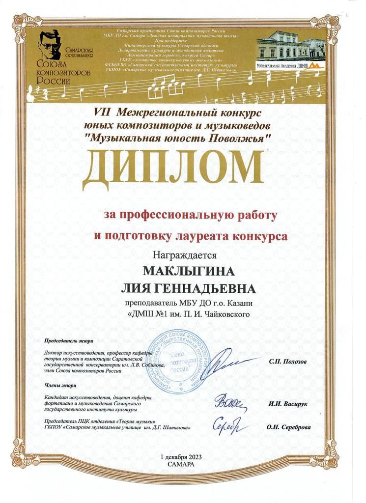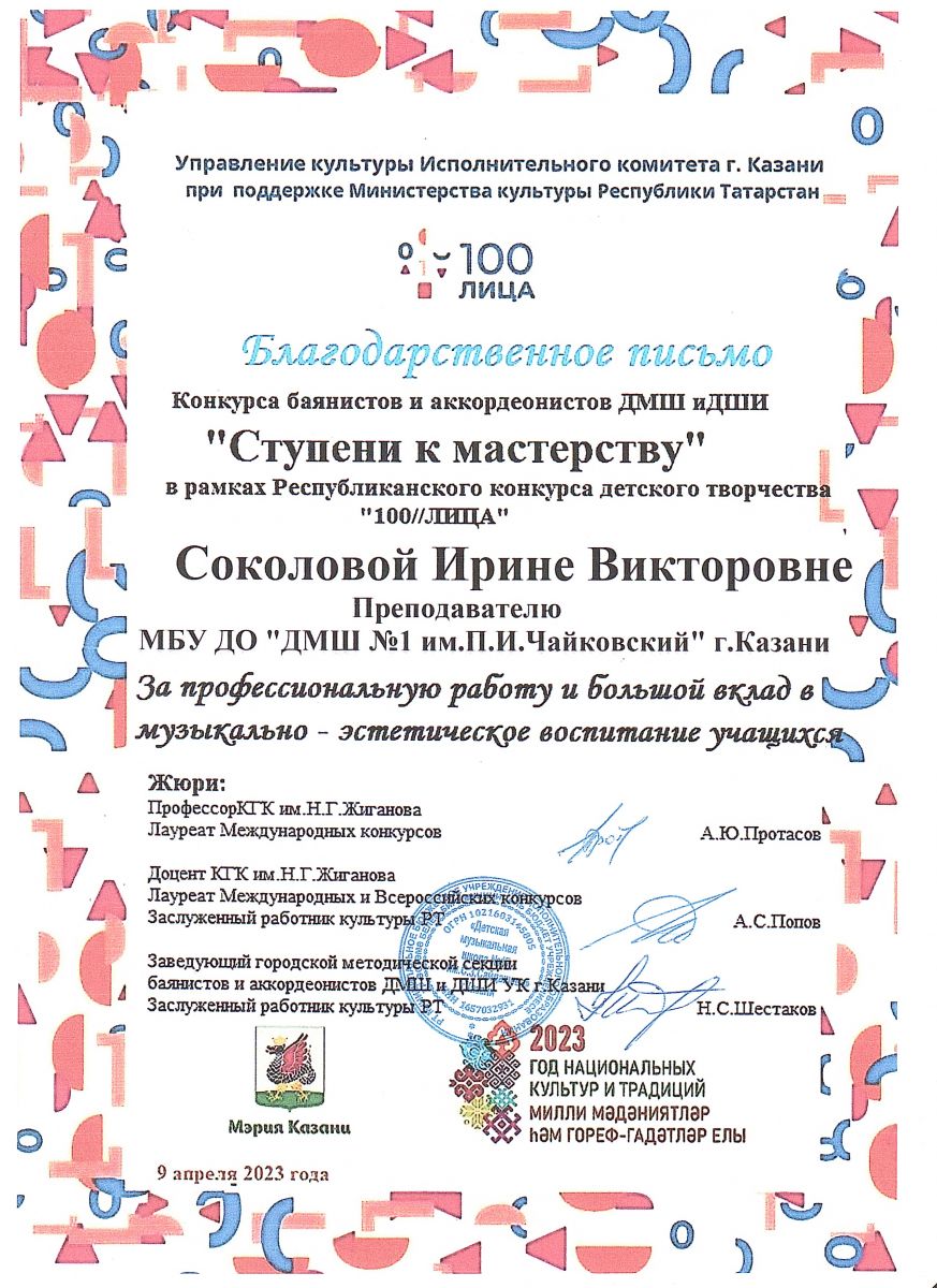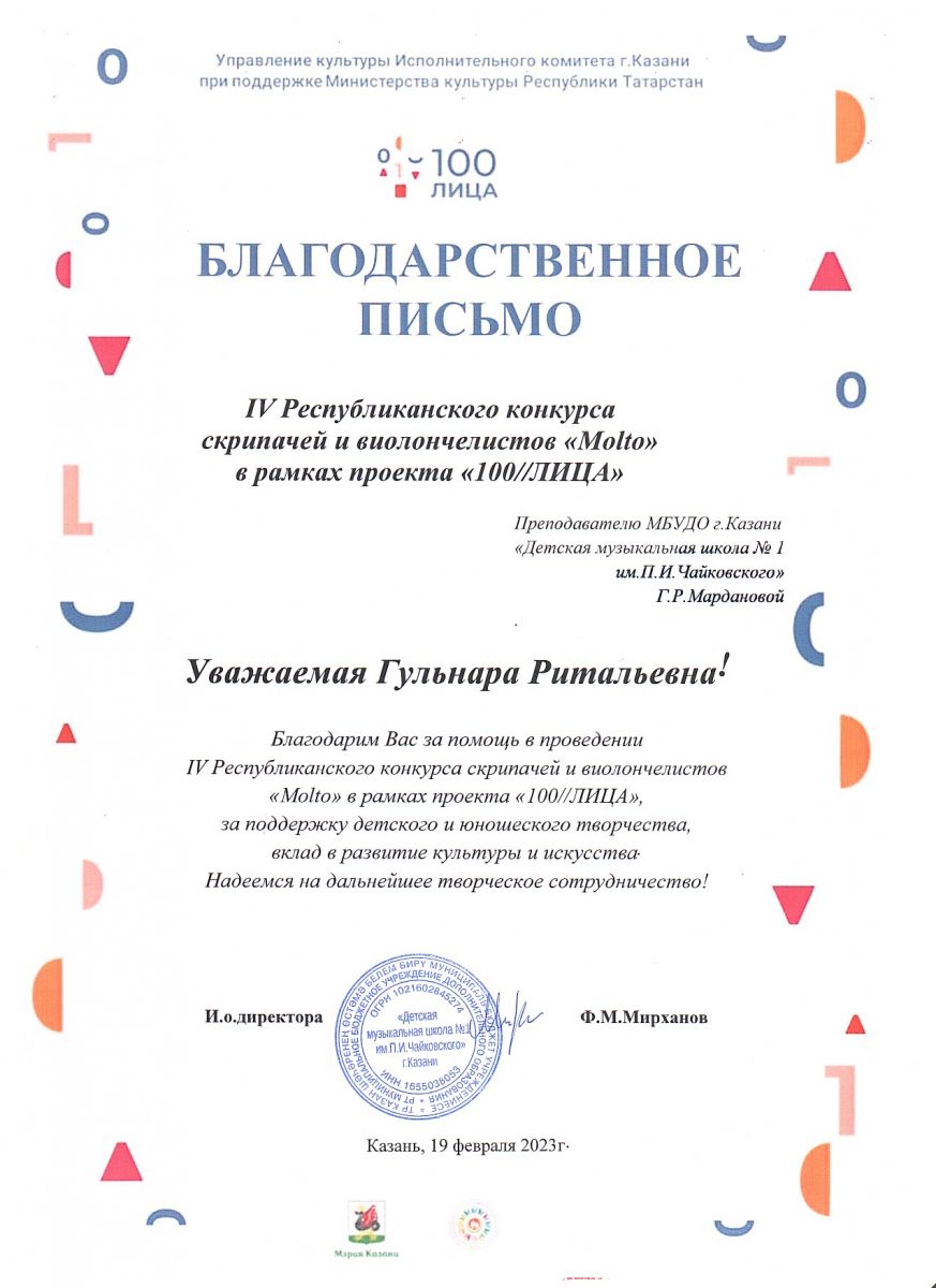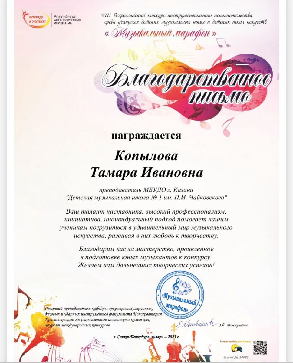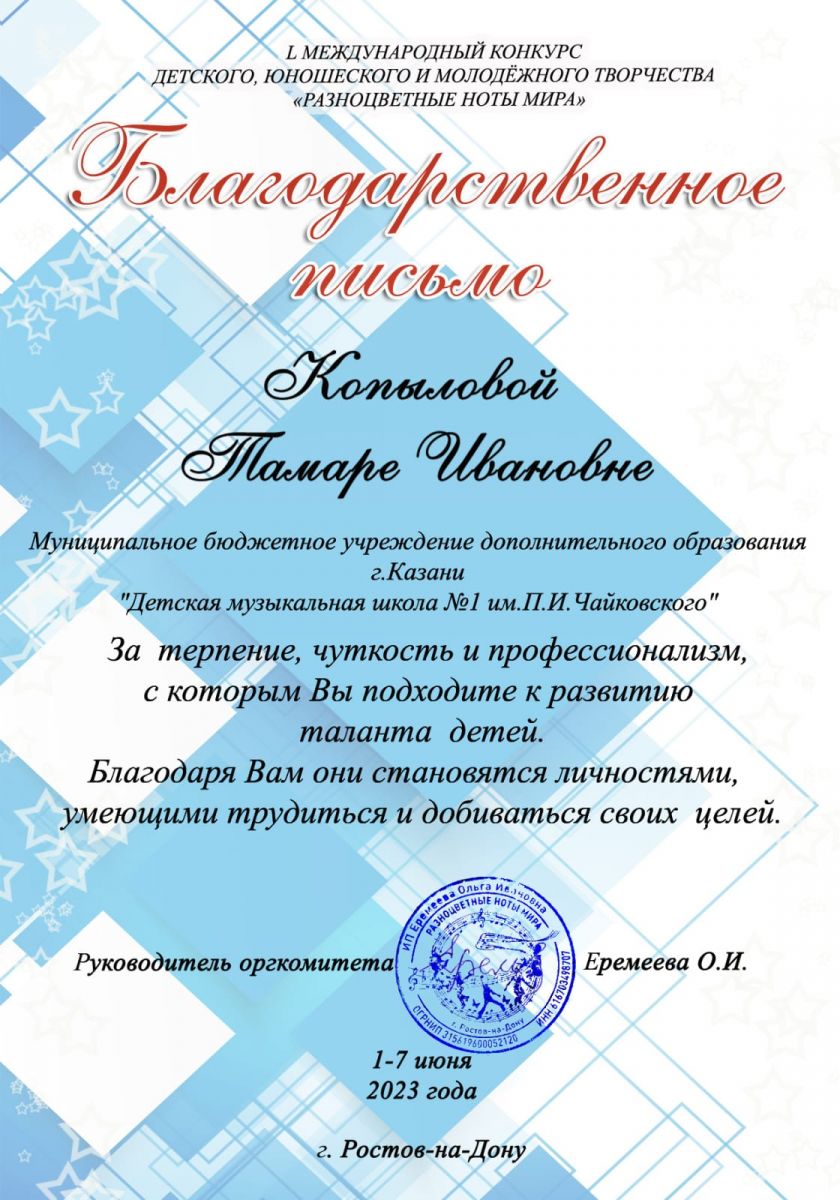 Международный конкурс-фестиваль "Поколение-2023" - Благодарность Хакимуллиной Г.Н.;