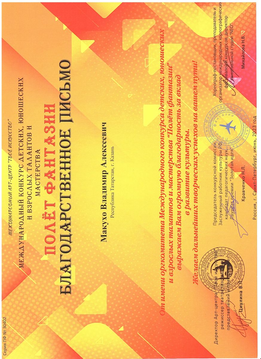 Международный фестиваль-конкурс "АРТ-Магия" - Благодарность Лаврентьеву А.А.;