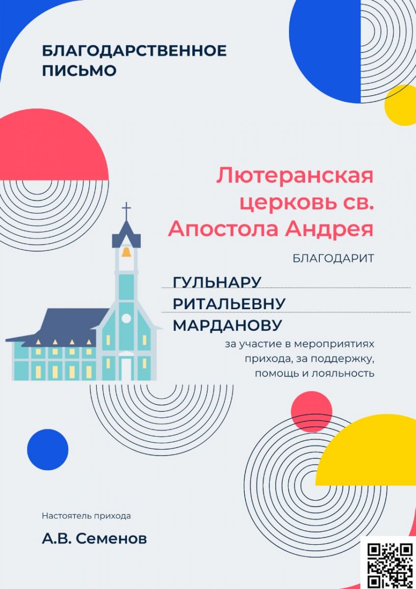 Лютеранская церковь с. Апостола Андрея - Благодарность Мардановой Г.Р.;