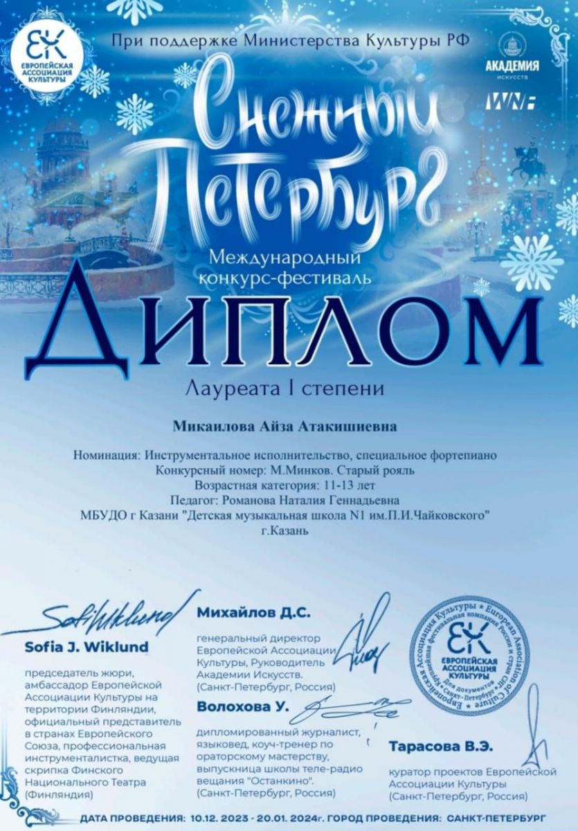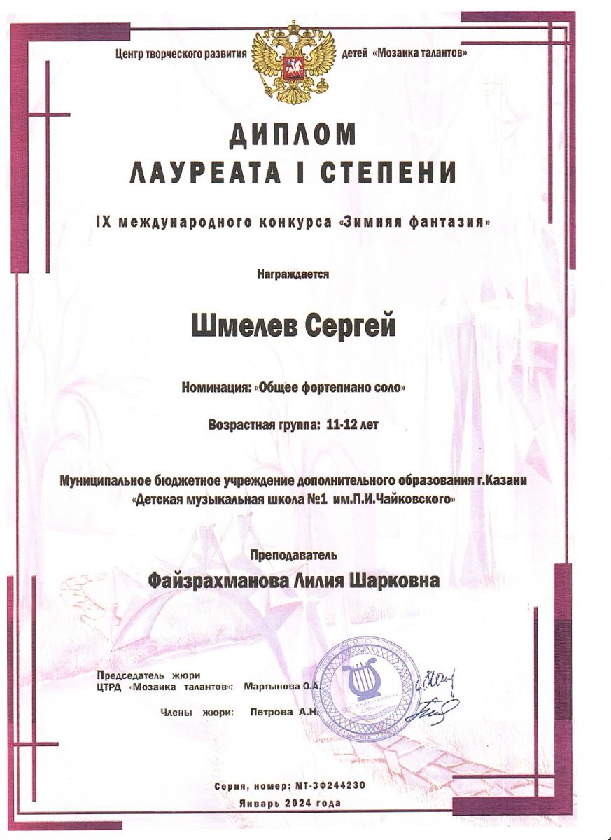 Муниципальное бюджетное учреждение дополнительного образования г.Казани "Детская музыкальная школа №1 им.П.И.Чайковского"
