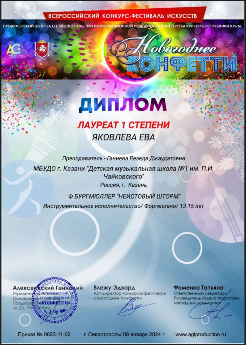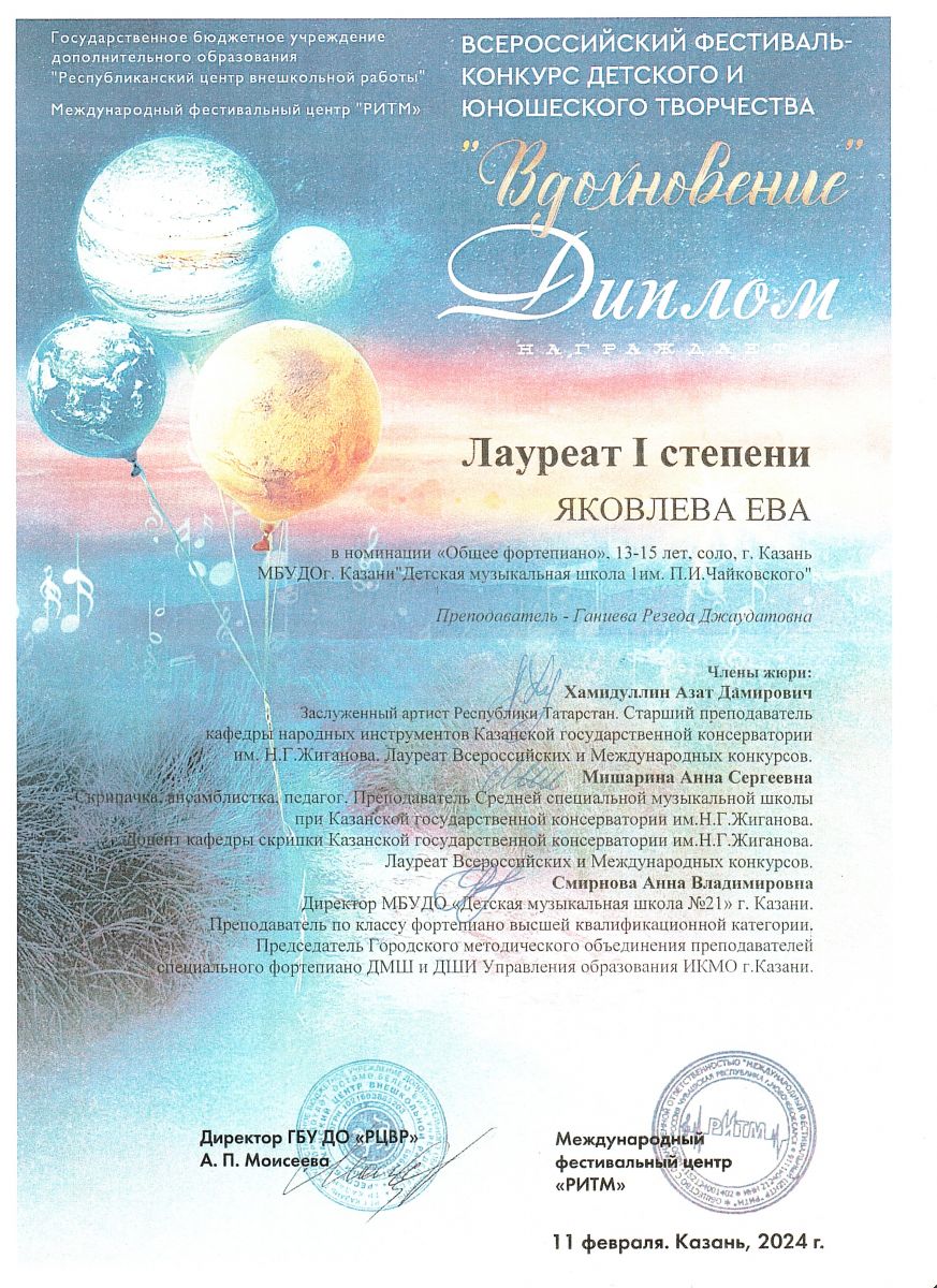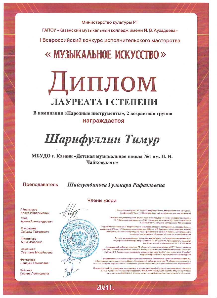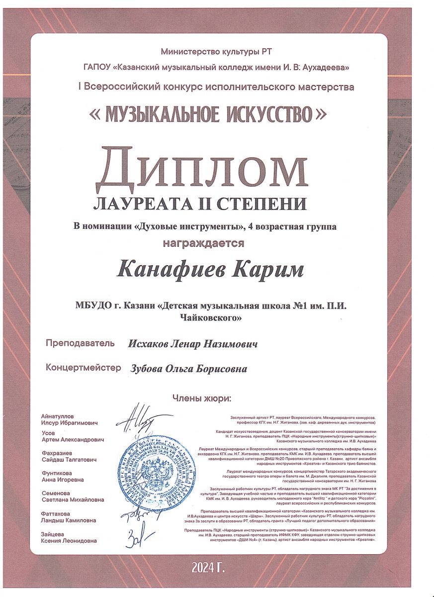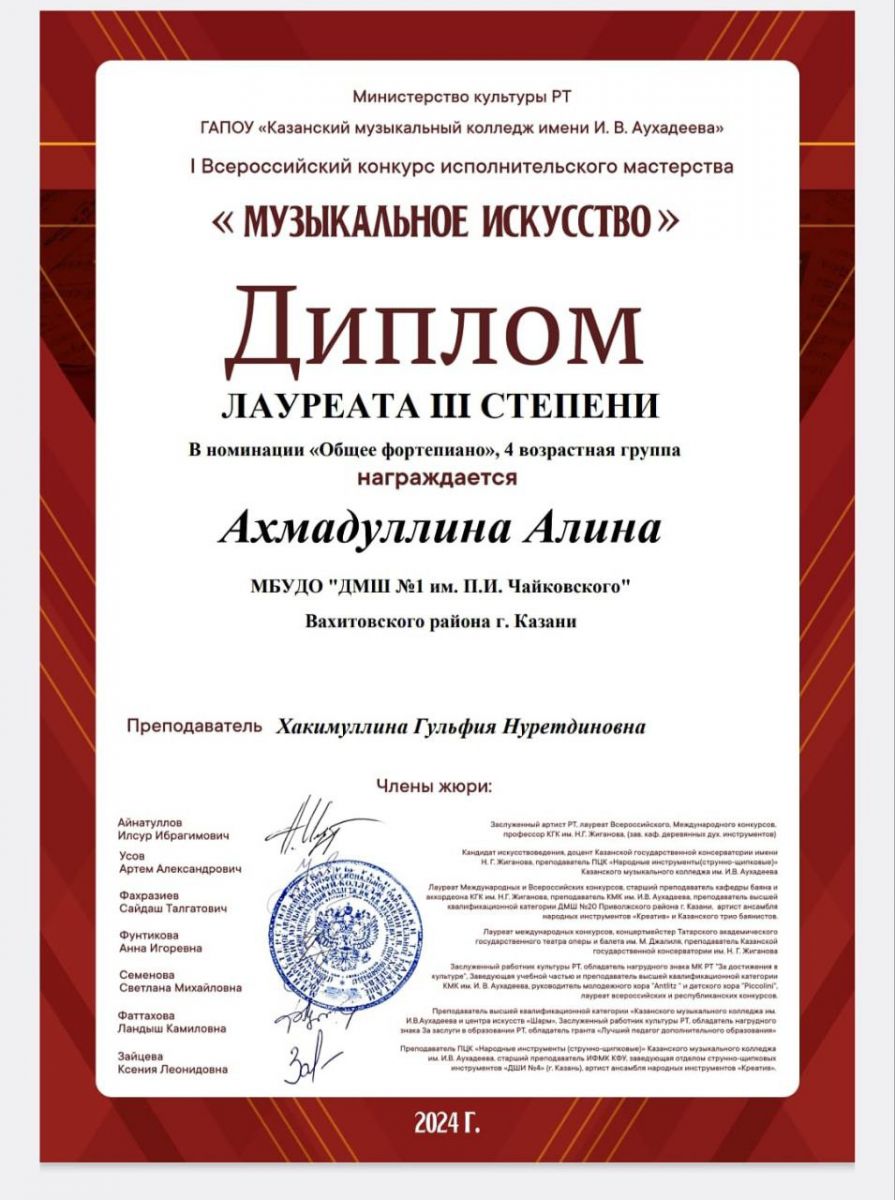 | Короткое название: | МБУДО г.Казани "Детская музыкальная школа №1 им. П.И. Чайковского" |