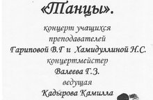 В стенах нашей школы состоялся концерт учащихся преподавателей Гариповой В.Г. и Хамидуллиной Н.С. Они подготовили тематический вечер "В ритме танца". Прозвучали менуэты, польки и вальсы в исполнении скрипки, фортепиано и гитары.