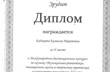 Теоретики школы продолжают учавствовать в научно-образовательном центре "Эрудит" и вновь Кадырова Камилла получила диплом II степени преп. Шоболова В.В.