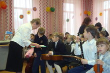 26.11.2014 В зале наше школы состоялся концерт-встреча с родителями и учащимися первого класса. Для них звучала музыка разных композиторов исполненная на различных инструментах учащимися и преподавателями школы. Дети и родители с удовольствием слушали и с интересом воспринимали рассказы Рябининой Любовь Ефимовны об инструментах.