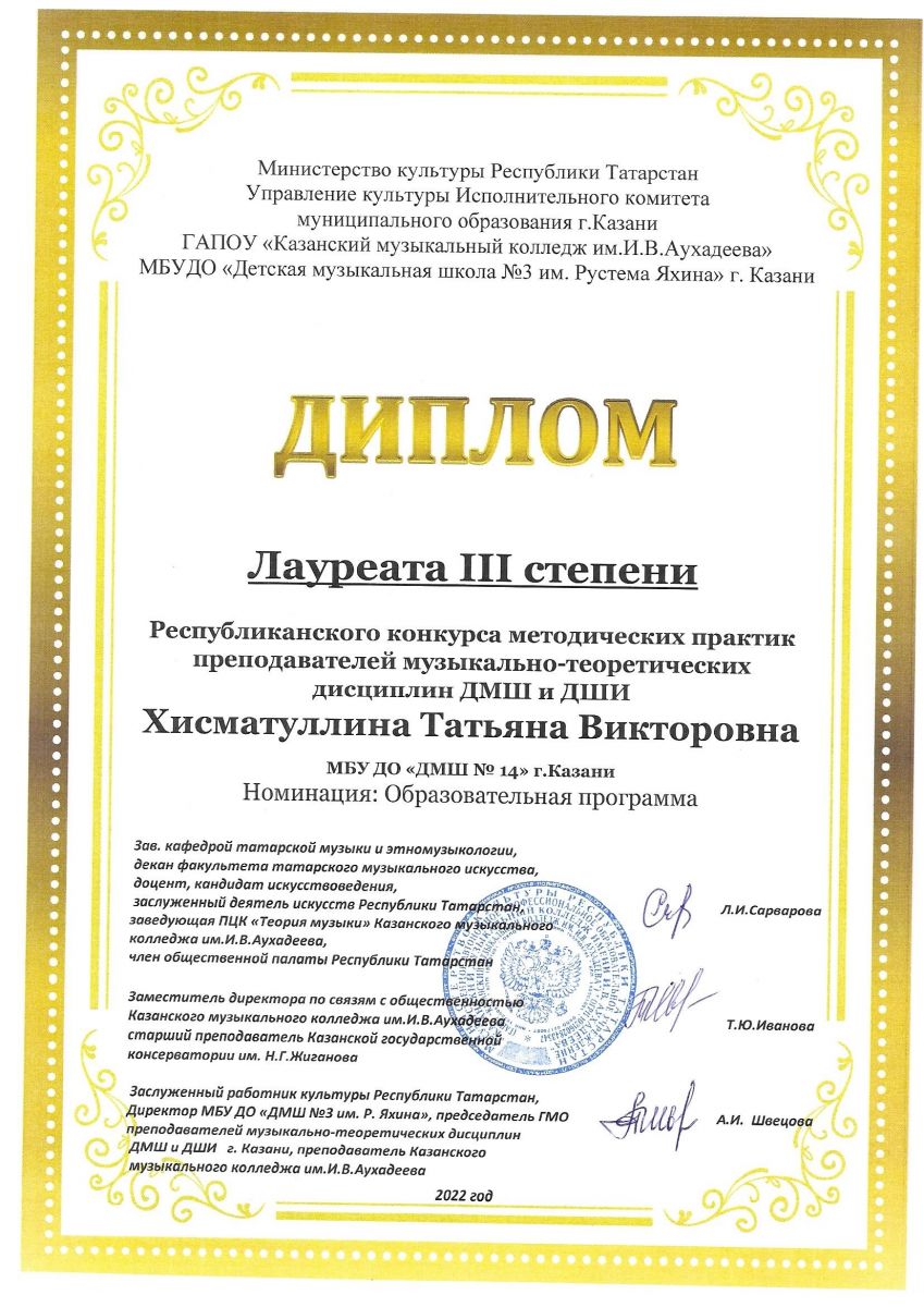 Муниципальное бюджетное учреждение дополнительного образования "Детская музыкальная школа №3 им. Рустема Яхина" г. Казани