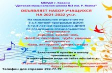 Набор учащихся в ДМШ №3 им.Р. Яхина на 2020-2021 учебный год закрыт.