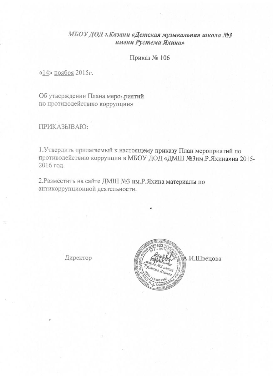 Приказ № 106 по профилактике противодействию коррупции