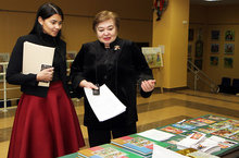 Гости не хотели расходиться - одни поднимались на сцену, чтобы более внимательно рассмотреть расставленные педагогами школы натюрморты с национальным колоритом, другие спешили в фойе, где были выставлены оригиналы детских работ, книги, подарочные изделия.