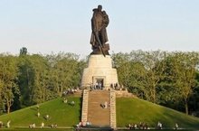 БЕРЛИН. МЕМОРИАЛ ТРЕПТОВ - ПАРКЗдесь похоронено свыше 7000 советских солдат, павших при штурме города Берлина.Гранит и мрамор для мемориала брали с развалин рейхсканцелярии, полностью уничтоженной по приказу советского командования. Также материалы использовались для братской могилы в парке Тиргартен (1945г.), для ремонта повреждённой во время войны станции берлинского U-Bahn «Моренштрассе» и позднее на станциях Московского метрополитена. -