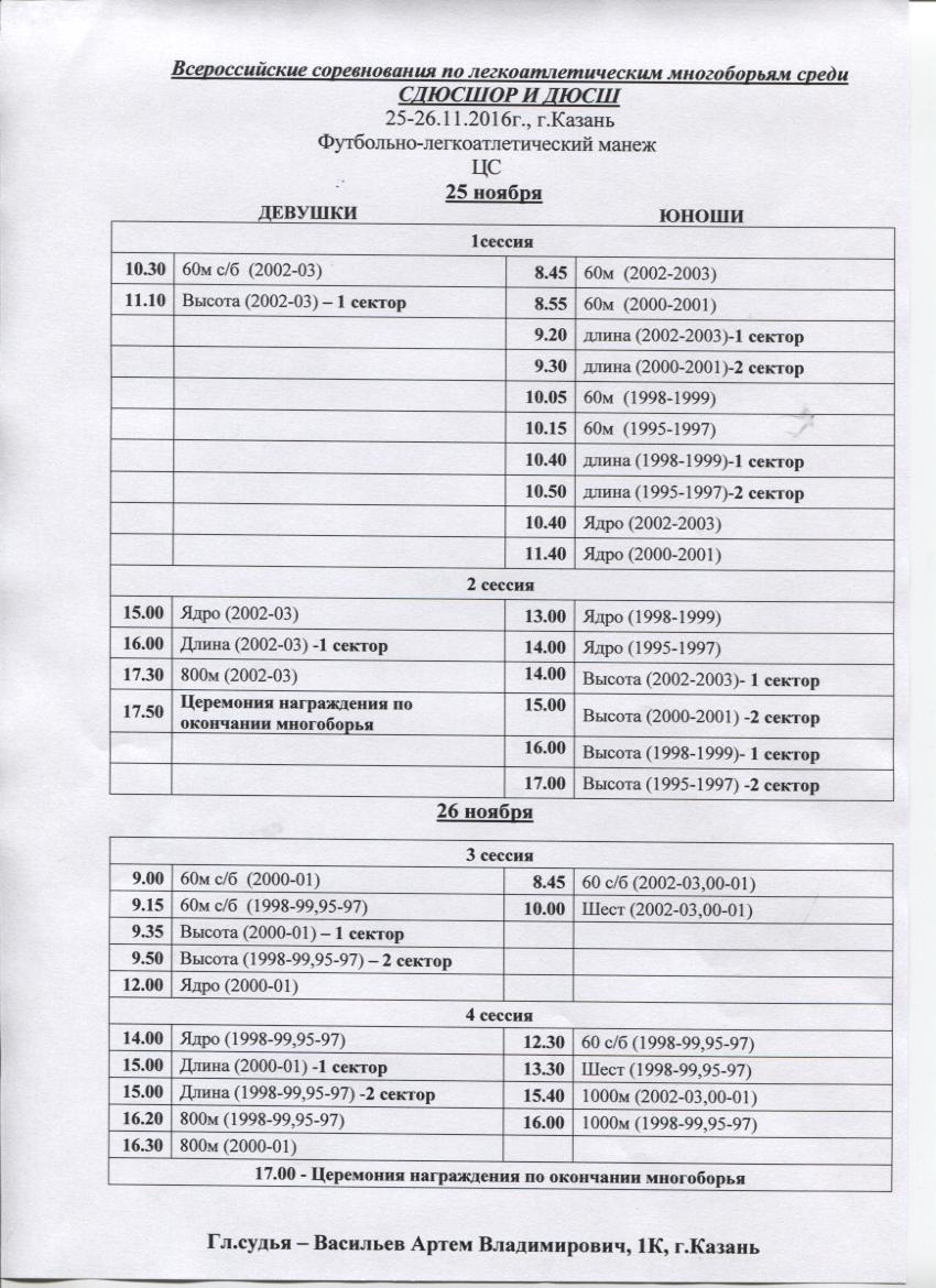 25-26 ноября в Казанском футбольно-легкоатлетическом манеже Центрального стадиона (Ташаяк, 2а) пройдут Всероссийские соревнования по легкоатлетическим многоборьям среди СДЮСШОР и ДЮСШ. День приезда участников - 24 ноября 2016. Вся подробная информация в положении →положение 004.jpg(стр1), положение 005.jpg(стр2), положение 006.jpg(стр3)