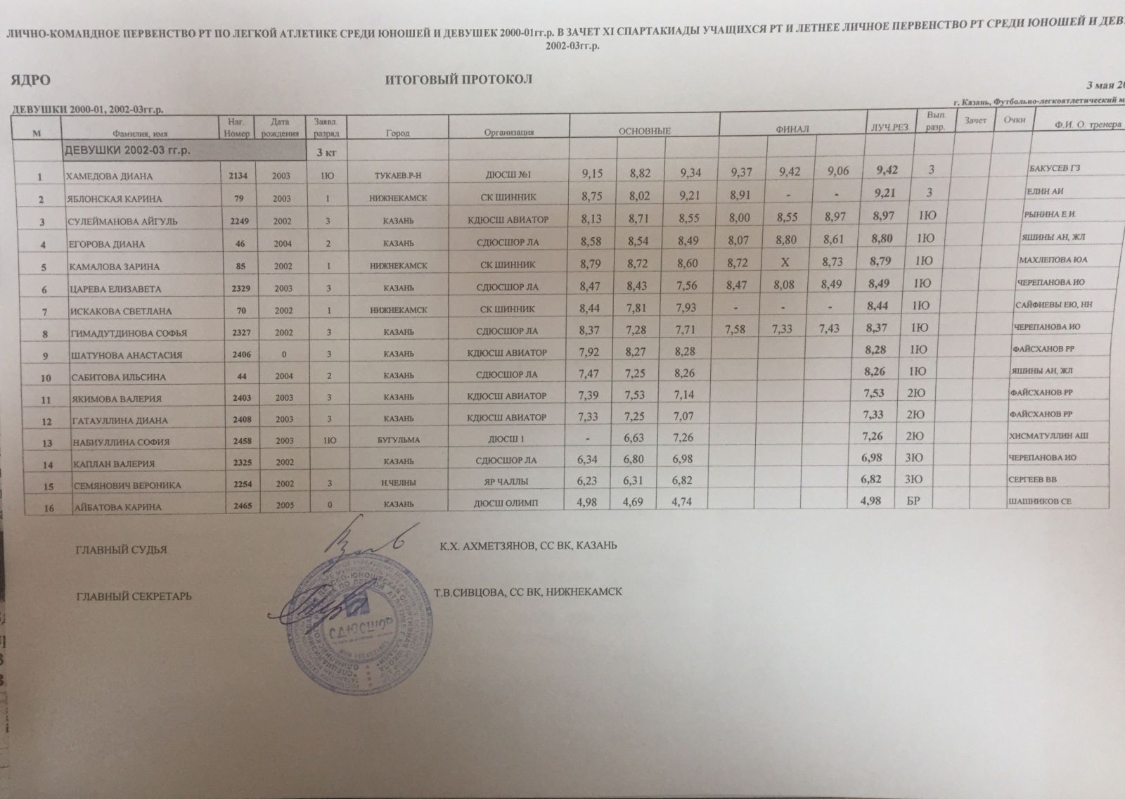 ЛИЧНО-КОМАНДНОЕ ПЕРВЕНСТВО РТ ПО ЛЕГКОЙ АТЛЕТИКЕ СРЕДИ ЮНОШЕЙ И ДЕВУШЕК 2000-2001гг.р. В ЗАЧЕТ XI СПАРТАКИАДЫ УЧАЩИХСЯ РТ И ЛЕТНЕЕ ПЕРВЕНСТВО РТ СРЕДИ ЮНОШЕЙ И ДЕВУШЕК 2002-2003гг.р., 3-5 мая 2017