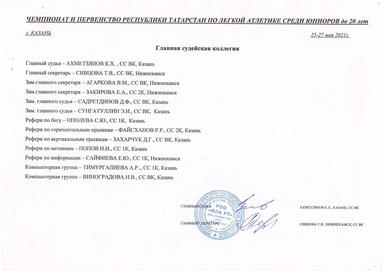 Чемпионат и Первенство РТ среди юниоров до 20 лет по легкой атлетике, 25-27.05.2021