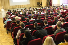 11 февраля 2020 г. старший инспектор "по пропаганде БДД" отделение Пропаганды БДД ОГИБДД УМВД России г. Казани капитан полиции Гилмутдинов Ленар Камилевич с целью профилактики детского дорожно-транспортного травматизма и пропаганды правил дорожного движения провел познавательную беседу-лекцию среди студентов 1-го курса