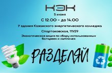 5 июня с 12.00 до 14.00 ГАПОУ «Казанский Энергетический Колледж» при поддержке Администрации Вахитовского района проводит экологическую акцию по сбору отработанных батареек и ртутьсодержащих ламп от населения.