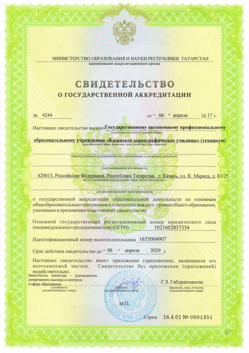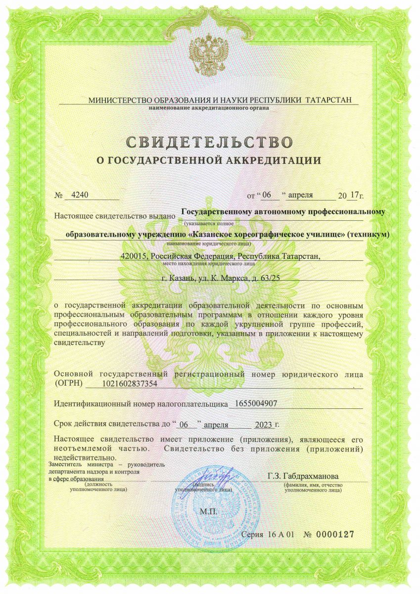 Государственное автономное профессиональное образовательное учреждение «Казанское хореографическое училище» (техникум)