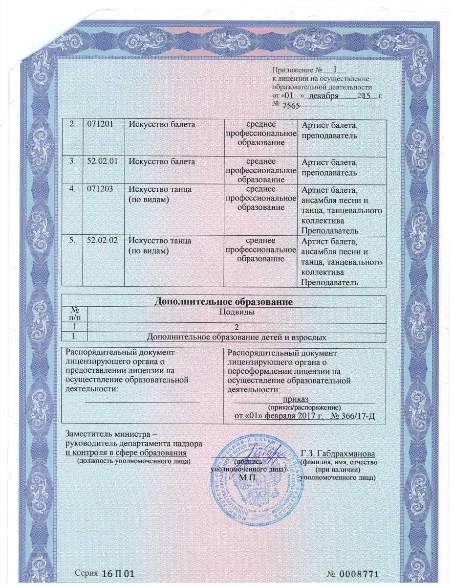 Приложение к свидетельству об аккредитации (сценические искусства и литературное творчество)