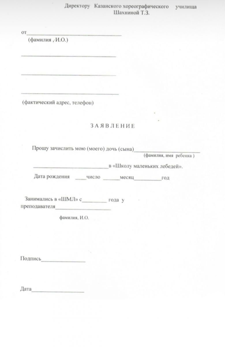 Заявление необходимо отправить по электронной почте: ballet-kazan@mail.ru