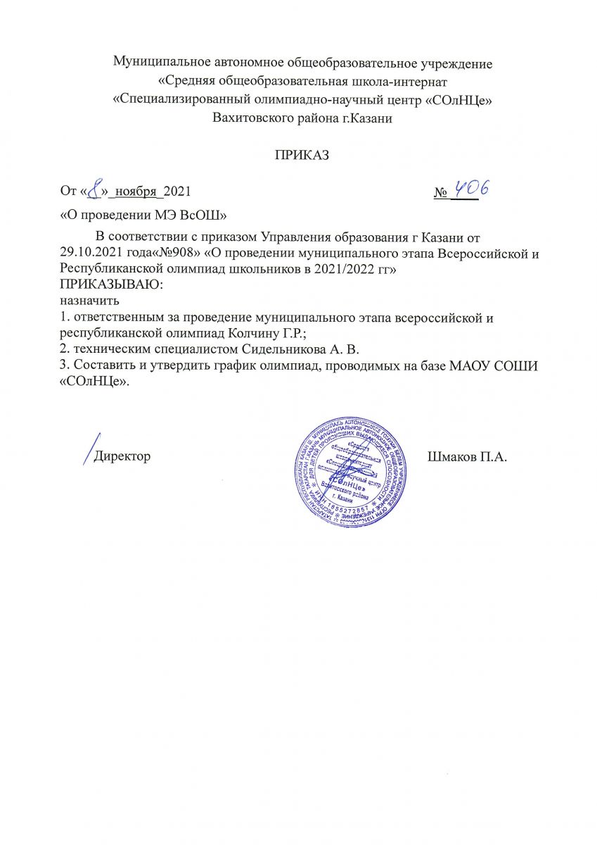 Приказы о проведении муниципального этапа Всероссийской и Республиканской олимпиад школников 2021/2022 гг.