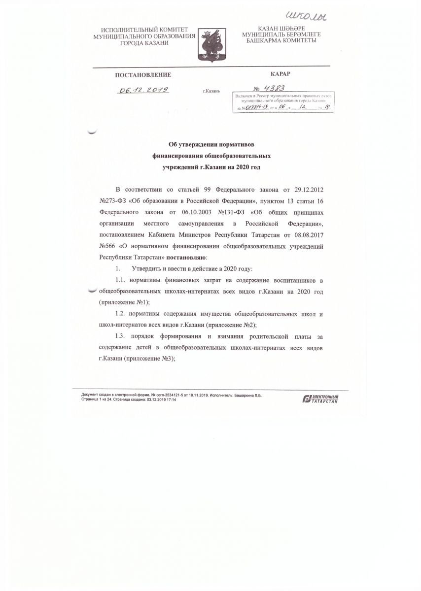 Опубликовано: 27.12.2019Смотреть Постановление от 6.12.2019 №4383