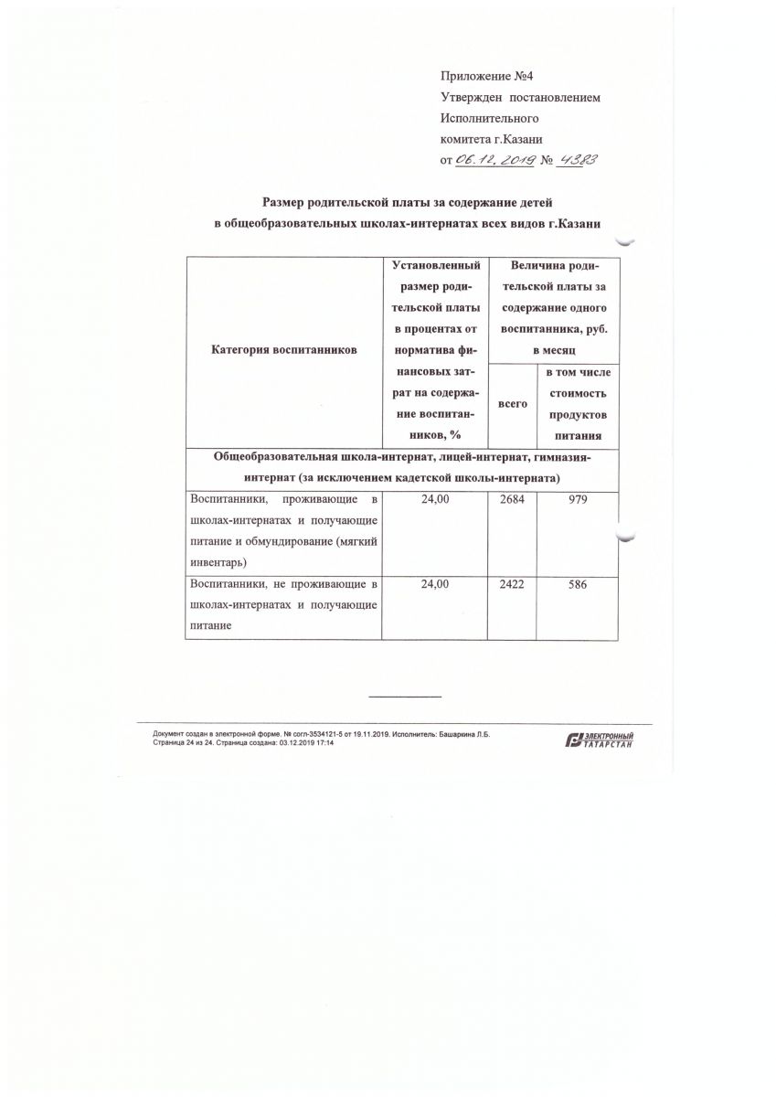Смотреть Приложение №4 Размер родительской платы за содержание детей
