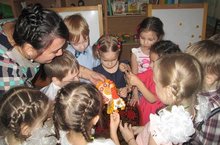 Сегодня в гости к младшим дошколятам пришел веселый Петрушка. Он рассказал детям сказку и пригласил их в необычайный, мелодичный, музыкальный магазин. Герои сказки вместе с детьми отгадывали знакомые мелодии и учились узнавать музыкальные инструменты на слух. В заключении все вместе организовали веселый оркестр. Мероприятие подготовили и провели музыкальный руководитель воспитатели групп.