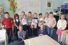 Мы иногда выкладываем фотоотчеты с уроков. Например, на прошлом уроке ИЗО ученики 2 класса сделали классную вертушку с картинками.