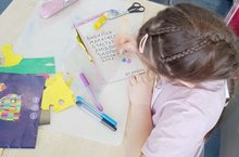 А еще каждый первоклассник на уроке ИЗО склеил и самостоятельно подписал открыточку для мамы