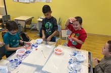 Ученик 2 класса Хузиахметов Карим научил одноклассников и Милину изготовлению слайма.