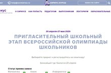Образовательный центр «Сириус» на своей платформе проведет с 20 апреля по 29 мая пригласительный школьный этап Всероссийской олимпиады школьников в онлайн-формате для всех регионов России. Олимпиада пройдет по математике, информатике, физике, химии, биологии и астрономии. Участвовать может любой ученик 4-10 класса, а по математике – с 3 класса. С условиями участия в Олимпиаде можно ознакомиться перейдя по ссылке https://sochisirius.ru/news/3519.