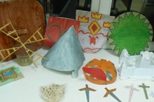 Тарих һәм җәмгыять белеме атналыгын йомгаклап, "Урта гасырларда кулдан эшләнгән тарихи эш һәм сугыш коралллары " дигән атама астындагы күргәзмәгә балалар төрледән-төрле тарихи макетлар әзерләп килгәннәр иде. Ул макетлардан гимназия китапханәсендә урта гасырларның тарихи ядкарьләрен хәтерләткән күргәзмә оешты. Күргәзмәдәге һәрбер макетны , кулга алып карау белән, ихтыярсыздан тарих чоңгылына чумганыңны сизми дә каласың...
