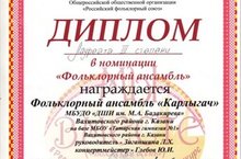 “Карлыгач” фольклор ансамбеле 3нче дәрәҗәдәге лауреат дипломы белән бүләкләнде 28.11.2015