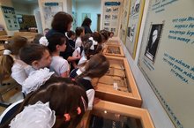 Гимназиябездә музей һәрдаим эшләп тора. Бүген дә 1 нче “А”, “Б” сыйныфлары биредә экскурсиядә булдылар. Аларга музейның кыскача тарихын, кайбер экспозицияләр һәм алар турында сөйләп үттеләр. Балалар бик кызыксыну белән барысын да күзәттеләр, сөйләүчене тыңладылар. Нәни укучыларның сораулары да күп булды, аларга да җавап таба алдылар.