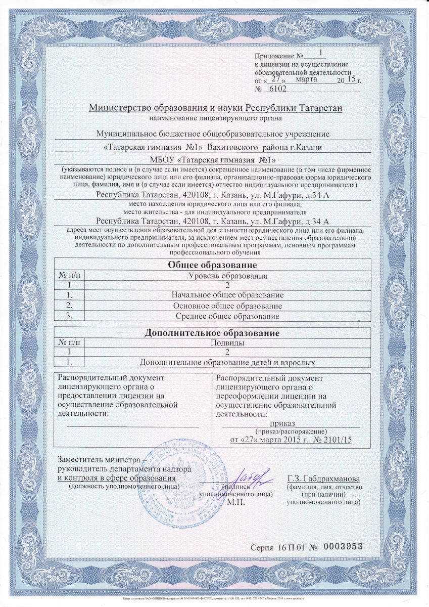 Короткое название: МБОУ "Татарская гимназия №1 им.Г.Тукая"