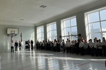 Закончились весенние каникулы и началась учеба. А началась она с общей линейки и выноса флагов РФ и РТ.