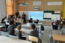 27 ноября занятия в Школе №1 начались с торжественной линейки, выноса флагов РФ и РТ и исполнения гимнов. Тема внеурочного занятия "Разговора о важном"- "Что такое Родина?"