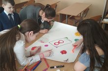 В конкурсе плакатов, посвященных Международному женскому дню приняли участие 1 б, 1 в, 6 а и 7 а классы.