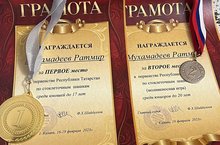 Ученик 3 "В" класса - Мухамадеев Ратмир занял 1 место на Республиканском соревновании по 100-клеточным шашкам среди мальчиков до 16 лет, среди мальчиков до 20 лет занял 2 место.