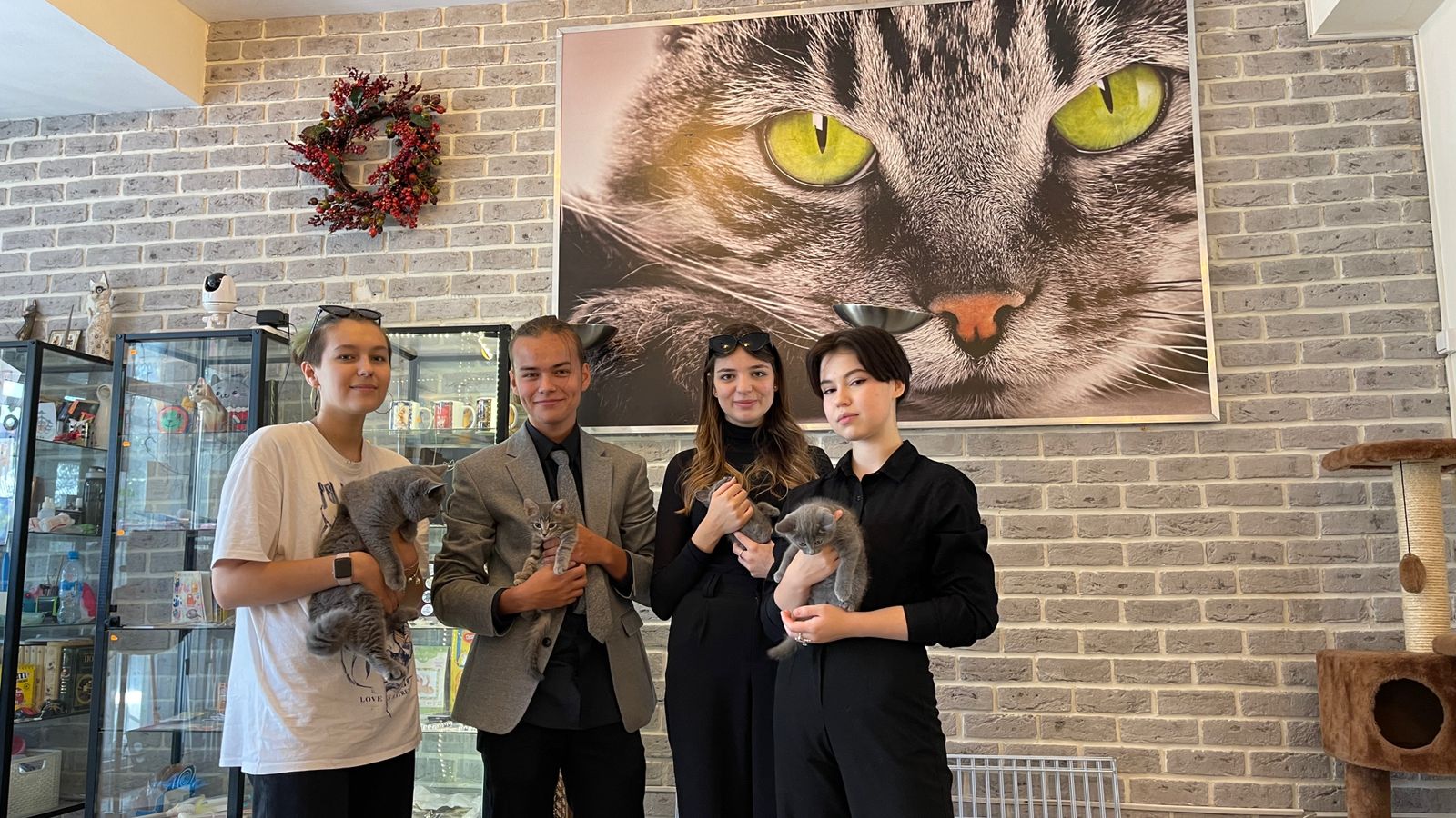 Опубликовано: 13.09.202111 сентября ученики посетили кафе кошек и принесли им 70 кг корма. Также кошкам принесли специально связанные шарики для игр.