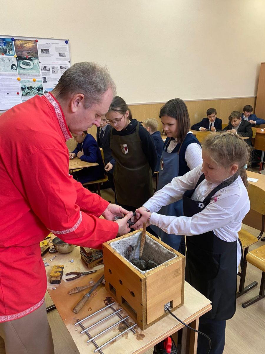 Опубликовано: 28.02.202222 февраля 2022г для учеников 5б класса прошел мастер-класс литейного дела.