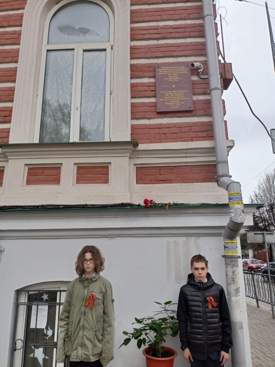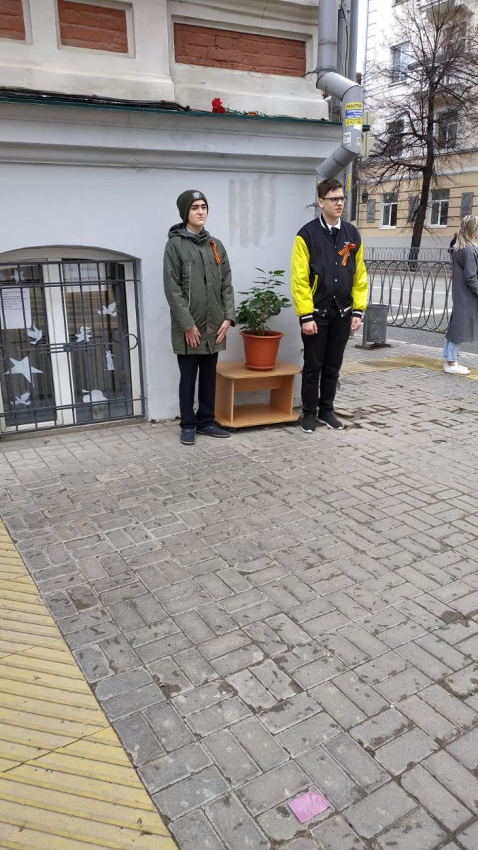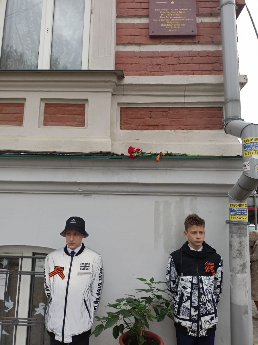 Опубликовано: 05.05.20225 мая прошел традиционный почетный караул у мемориальной доски Ивана Кабушкину. Стояли ученики 7а и 7б классов, дети очень гордо несли караул у доски героя Советского Союза и ВОВ.