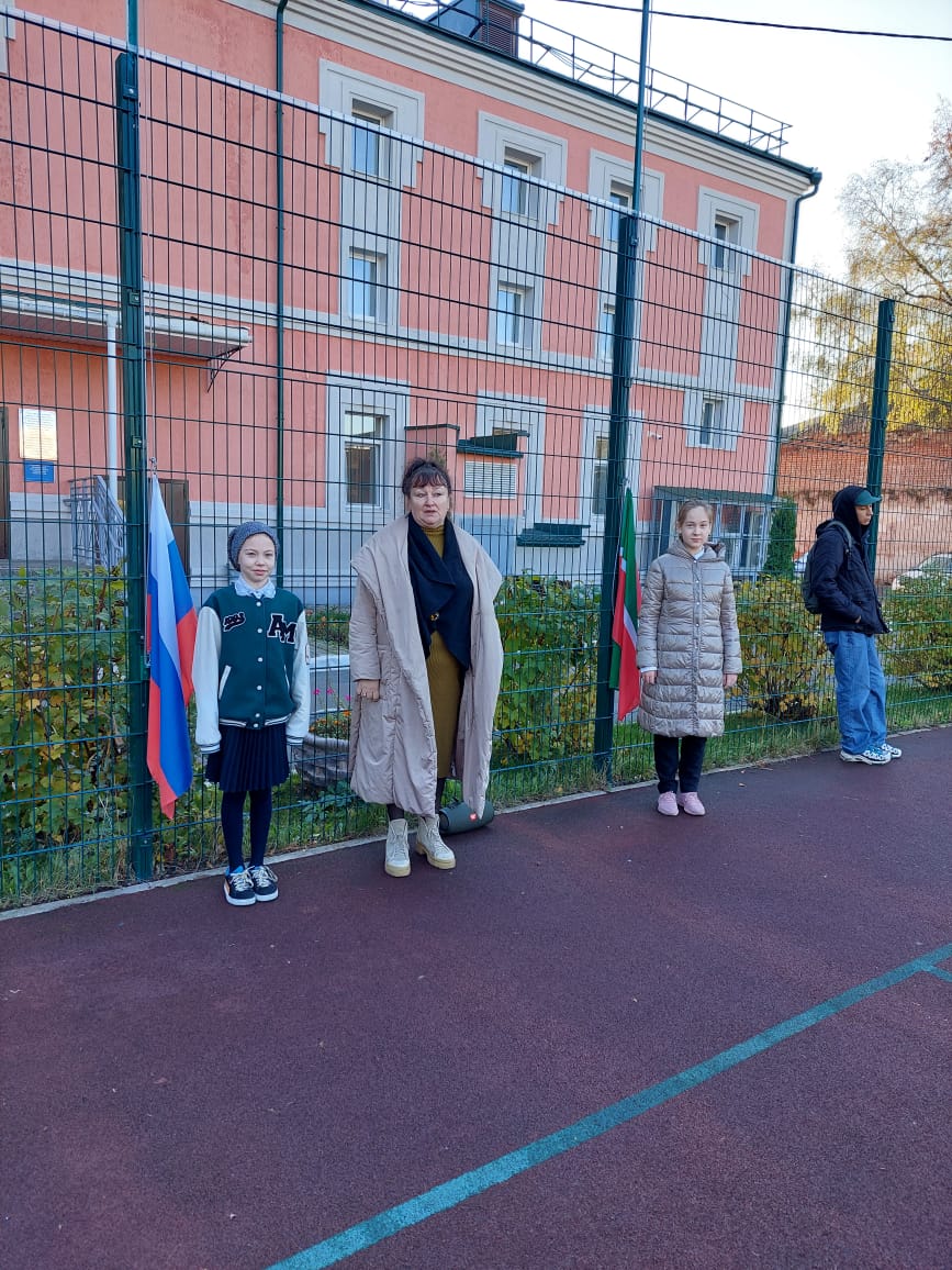 Опубликовано: 17.10.202217 октября в гимназии прошла Торжественная линейка, Лучшие ученики гимназии поднимали флаги РФ и РТ под исполнение гимнов всеми детьми.