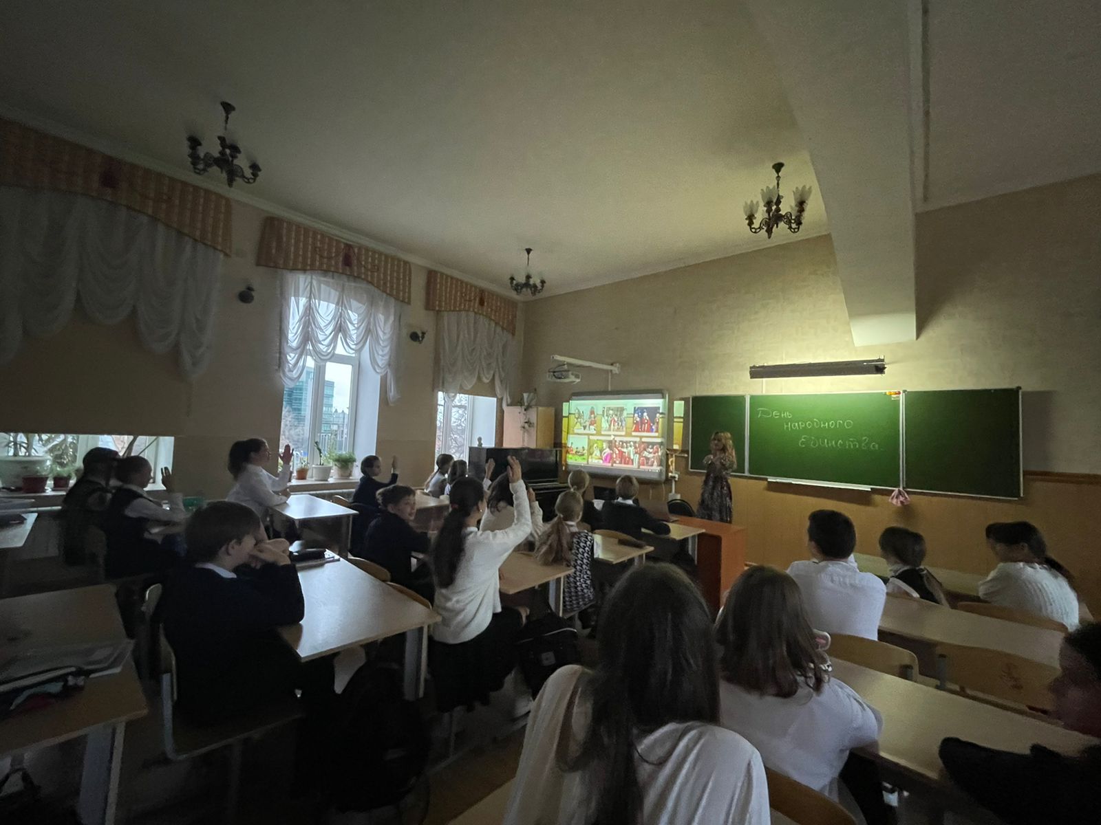 Опубликовано: 07.11.20227 ноября для всех классов прошёл Всероссийский внеурочный час "Разговор о важном" на тему "День народного единства".