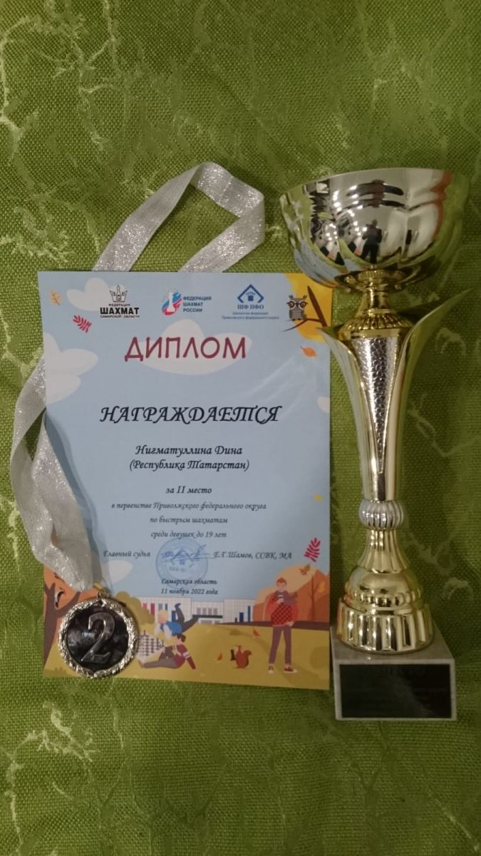 Опубликовано: 14.11.2022Поздравляем ученицу 10а класса Нигматуллину Дину за II место в в первенстве Приволжского федерального округа по быстрым шахматам среди девушек до 19 лет!